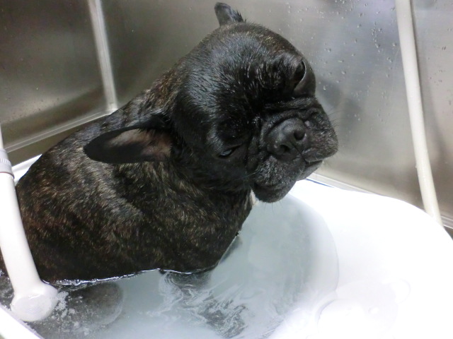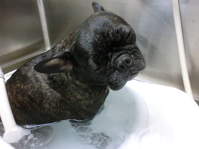 今回のモデルはフレンチブルドックの青空ちゃん!!二回目の温泉でウトウト。。。