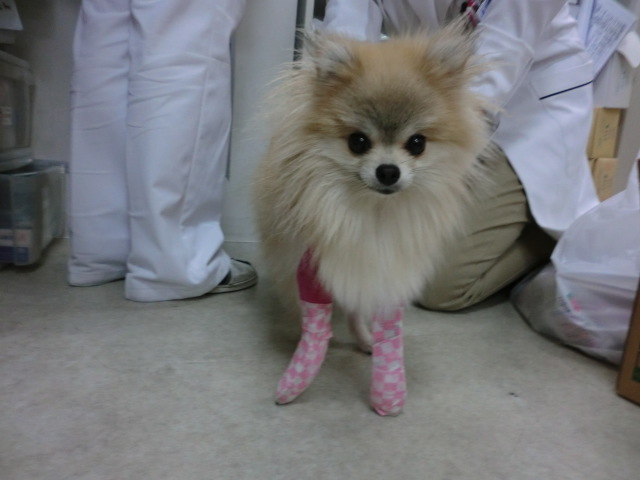 本日は両方の前足を骨折してしまった体重2kg、骨の厚み3、4mmのポメラニアンちゃんの治療をご紹介させて頂きます![]()