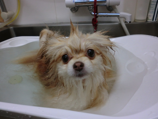 この子は今日、トリミングにて炭酸泉を満喫しているポメちゃんです